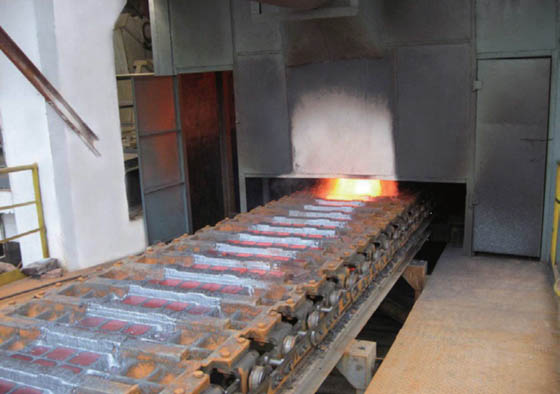 独立建造的专属生成物,匠人熟,适于保护区。回收利用于铅阳极氧化渣的一直铸锭。 驱动程序加装带动链轮和铸模反应迟钝、安全挪动,液体状态渣由融炼炉流到偏角可变的尾端流槽,颠末流槽将持续、的平均地吸取铸渣模中。渣锭经空气冷却后,在垂直线铸渣发动机部轮处从铸渣模中脱掉。 铸渣机配置有一系列循环水系统消防消防喷淋搭配,可所经的程序运行洒水来淬炼渣锭的一系列散热的程序运行。每个雾炮都配置有阀门控制,可友盒地控制消防消防喷淋的规模。